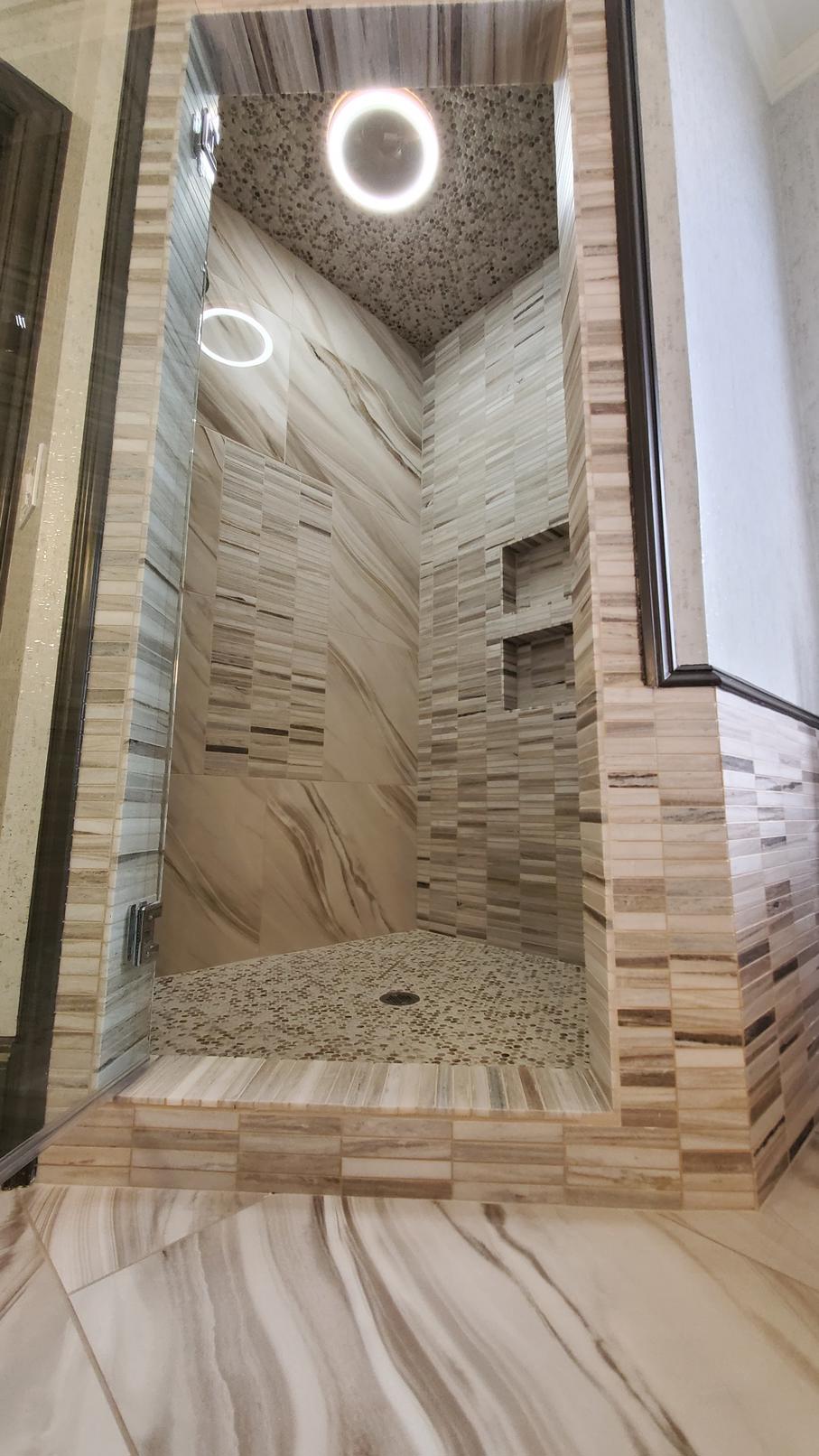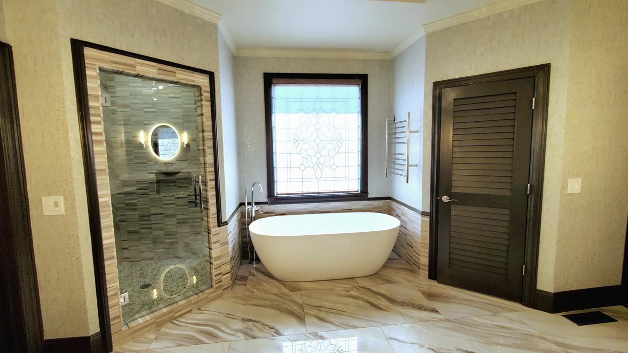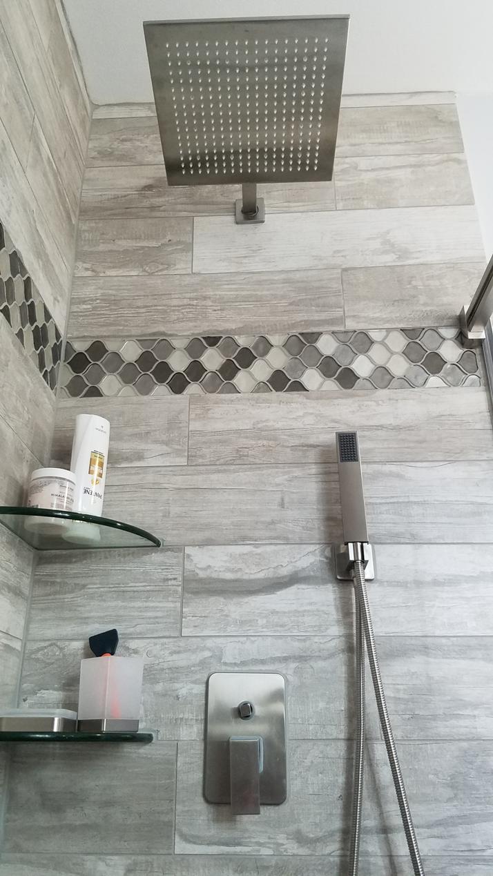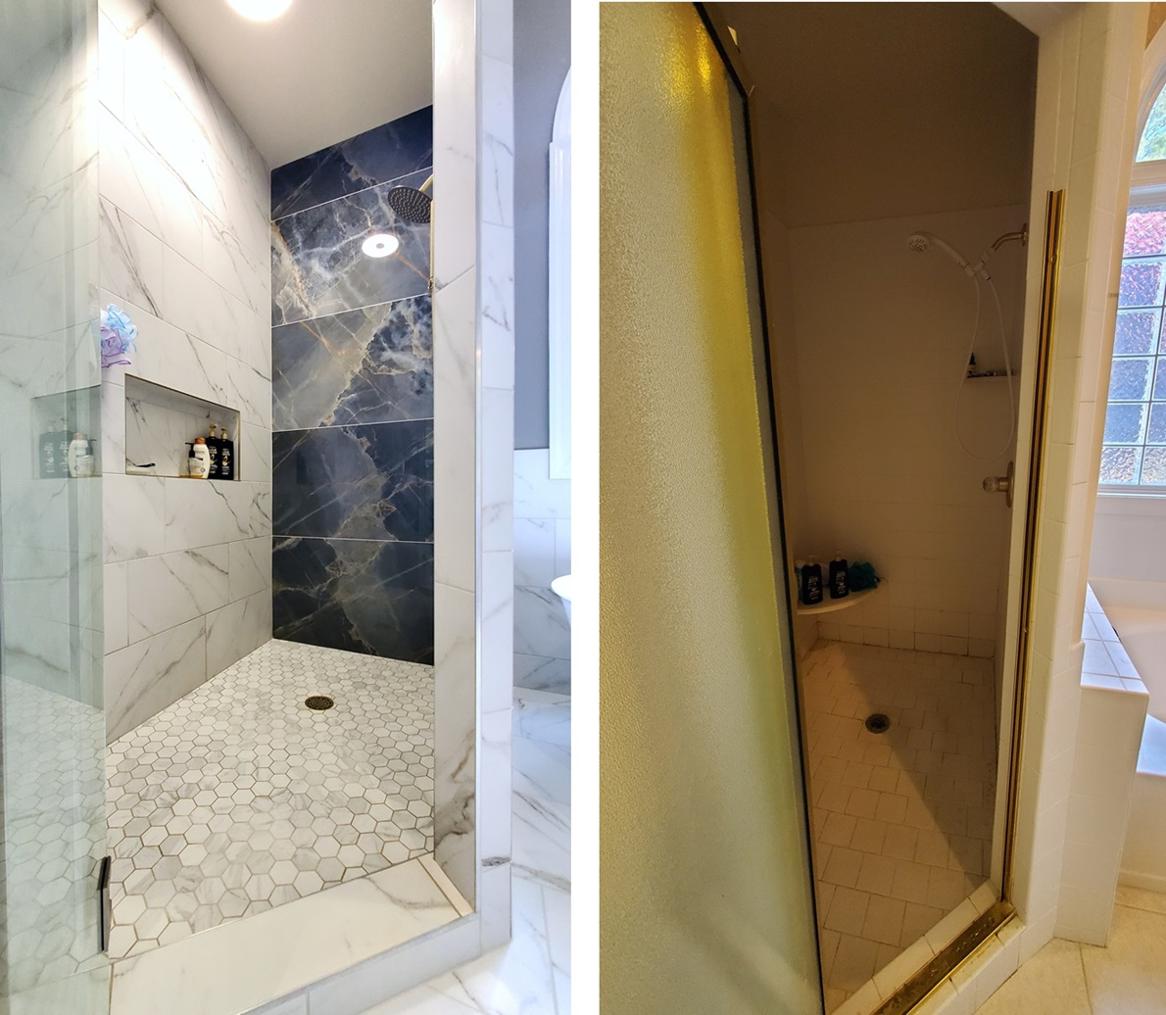 Tub to shower conversion, sliding glass door, new vanity, electrical, plumbing, tile installation, moving drain to center, painting, trims, and more...