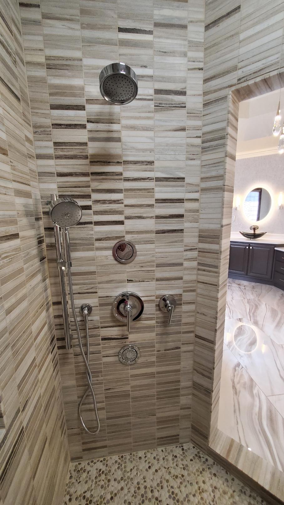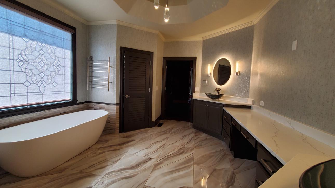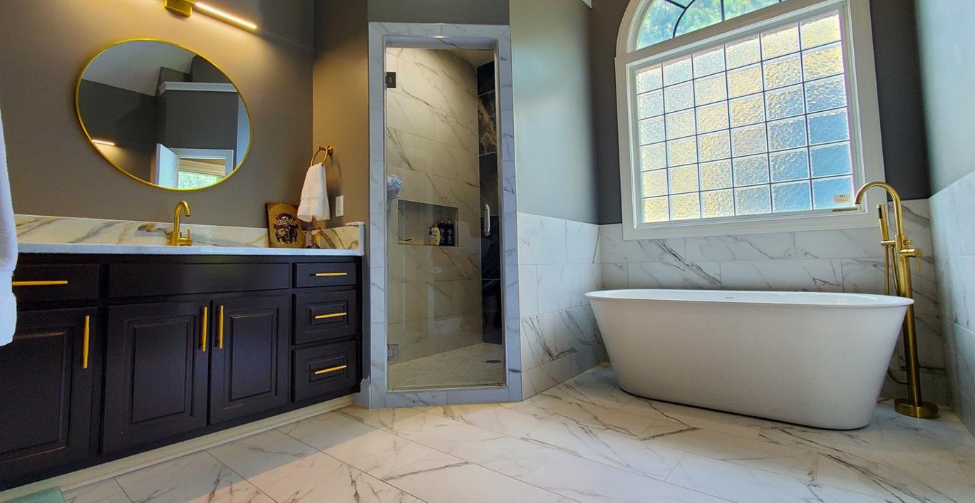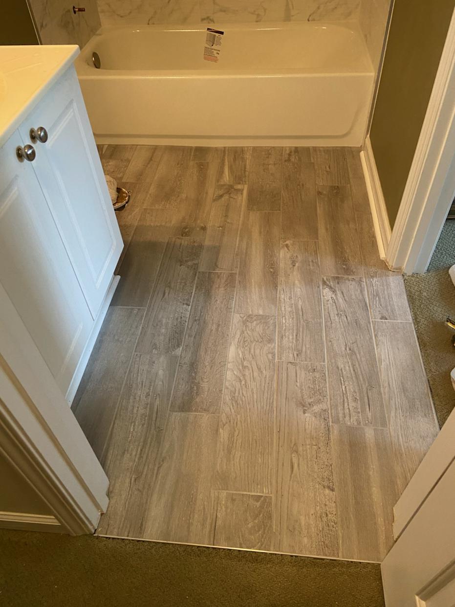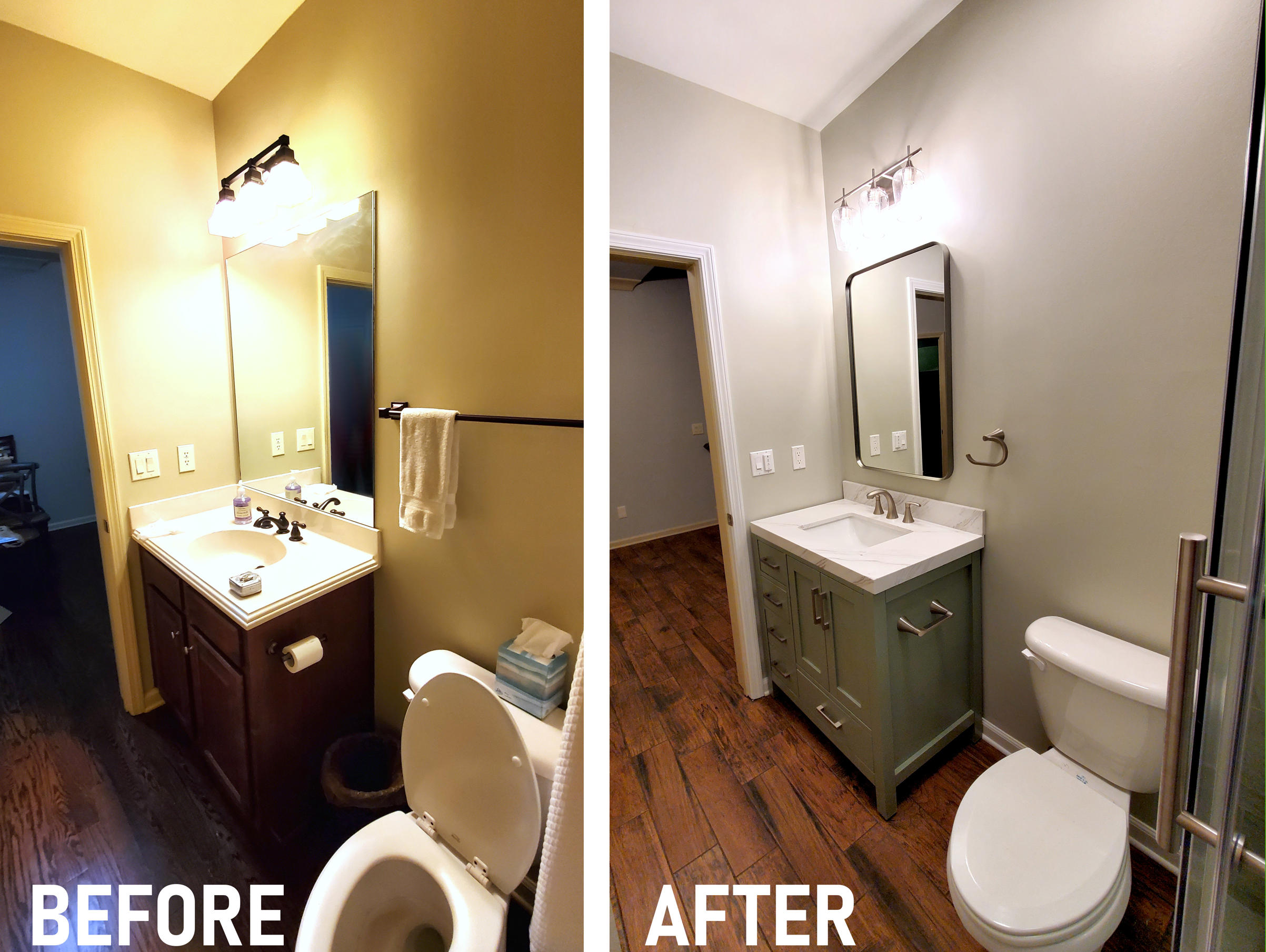 Tub to shower conversion, sliding glass door, new vanity, electrical, plumbing, tile installation, moving drain to center, painting, trims, and more...