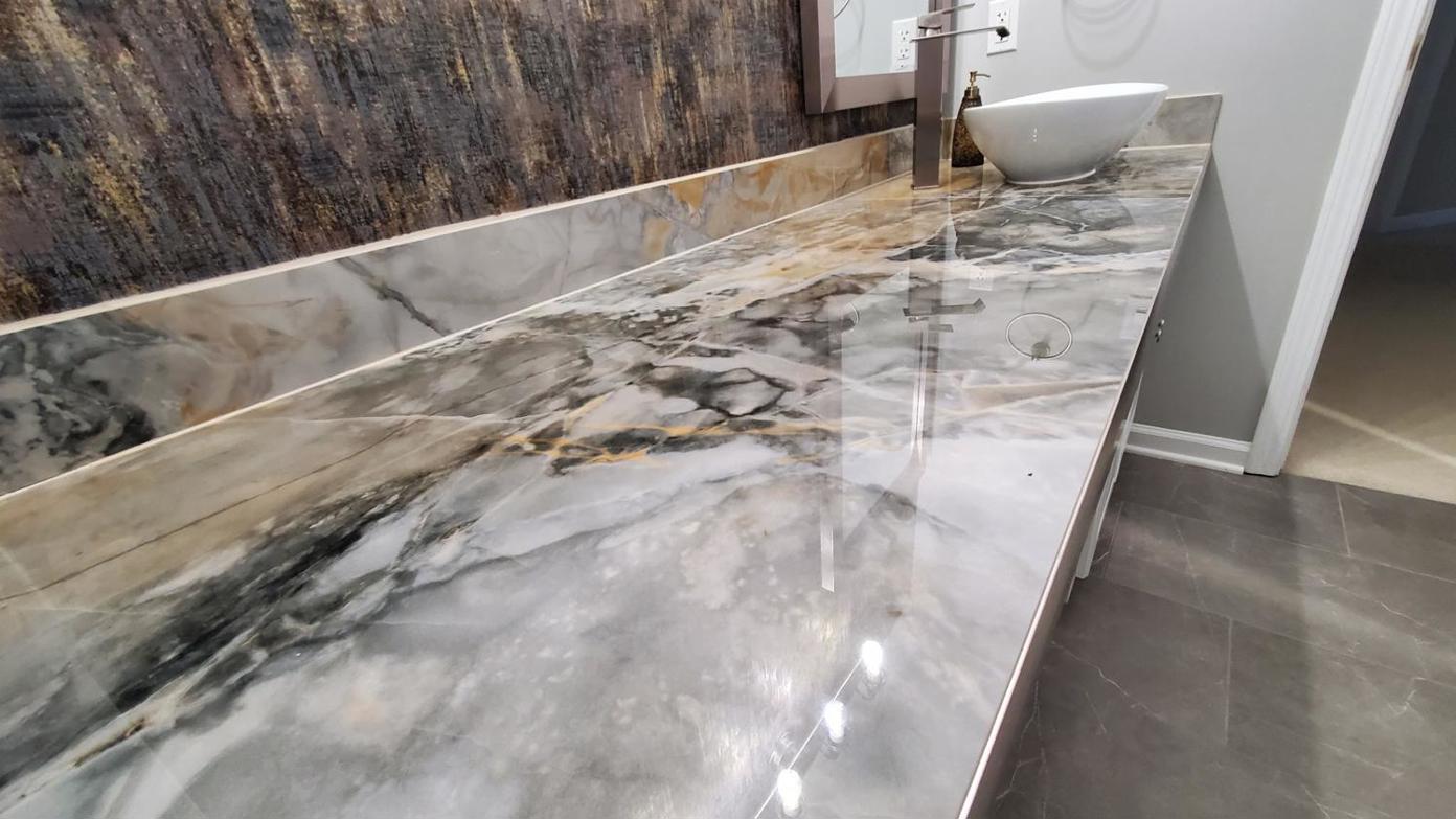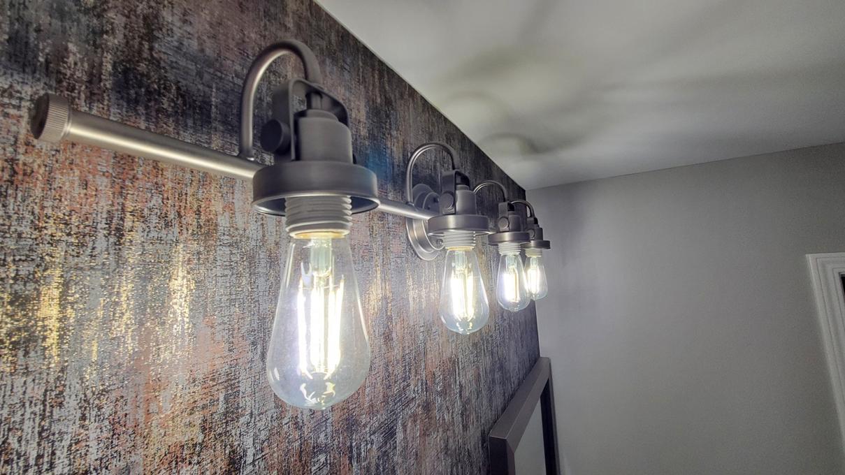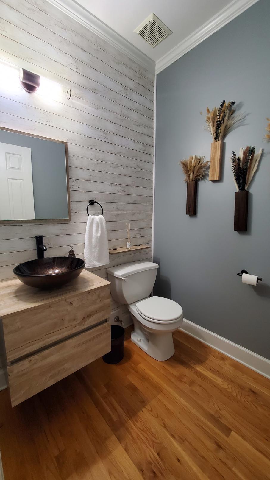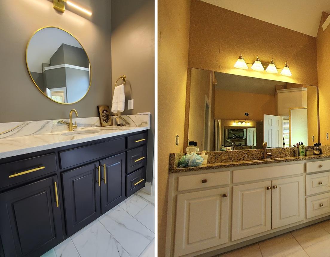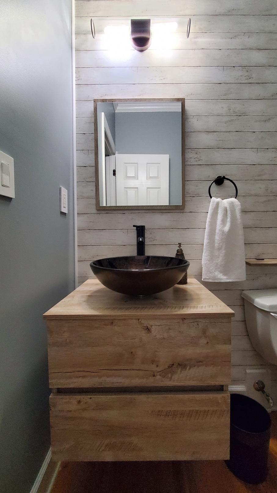 New Countertops, Painted Vanity, Wallpaper, New Tiles and all Fixtures