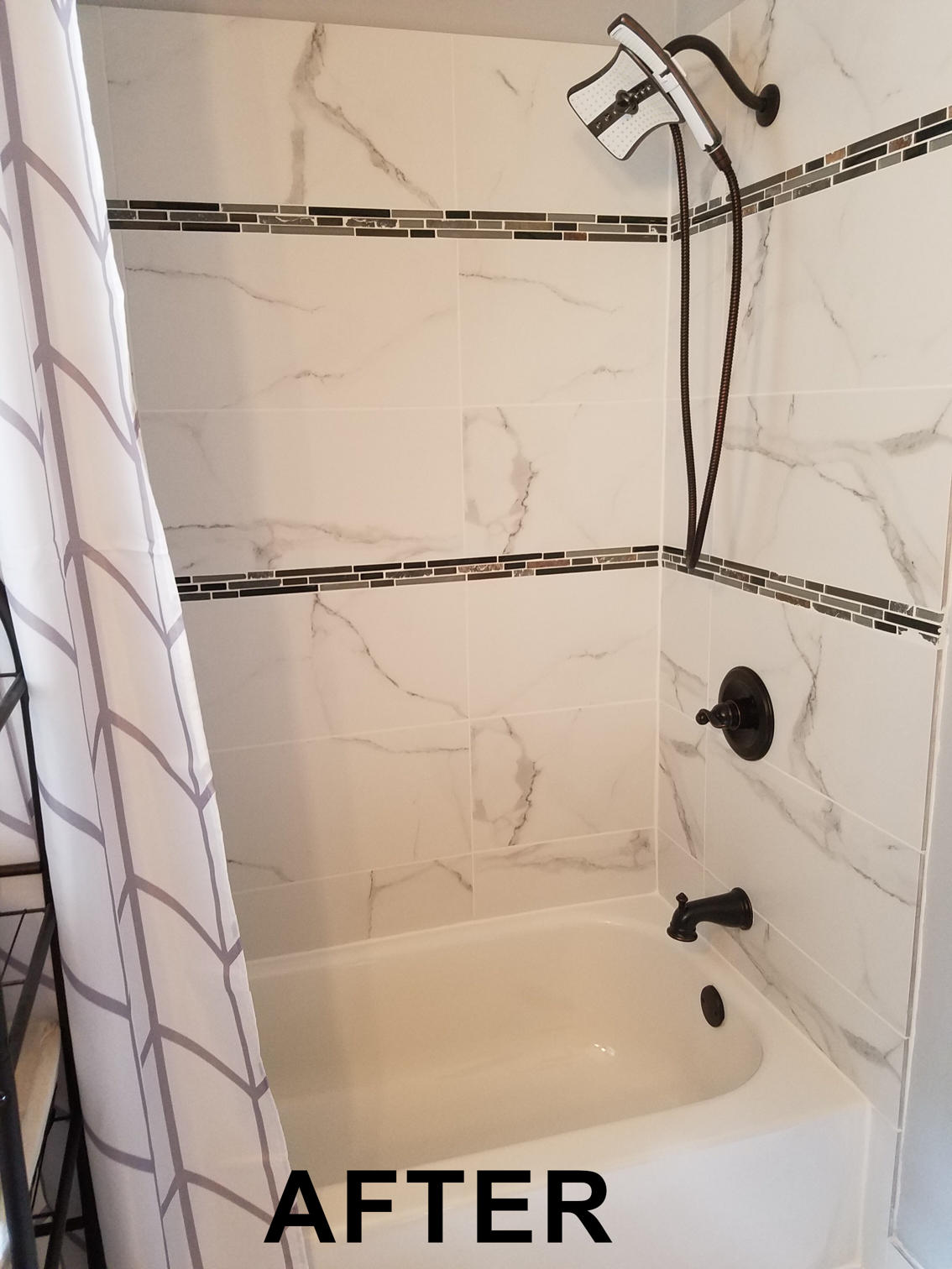 After! - New Tub, Tiled Walls, Soap Niche, Shower Trim Kit, and more...
