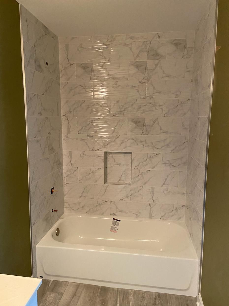 Tiled Walls, Tiled Floor, Soap Niche, New Tub