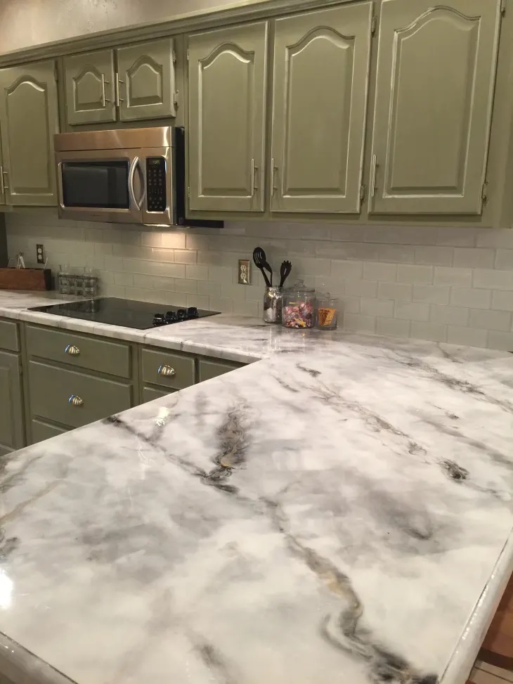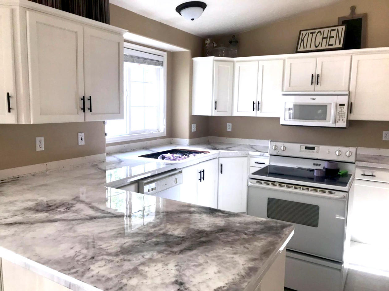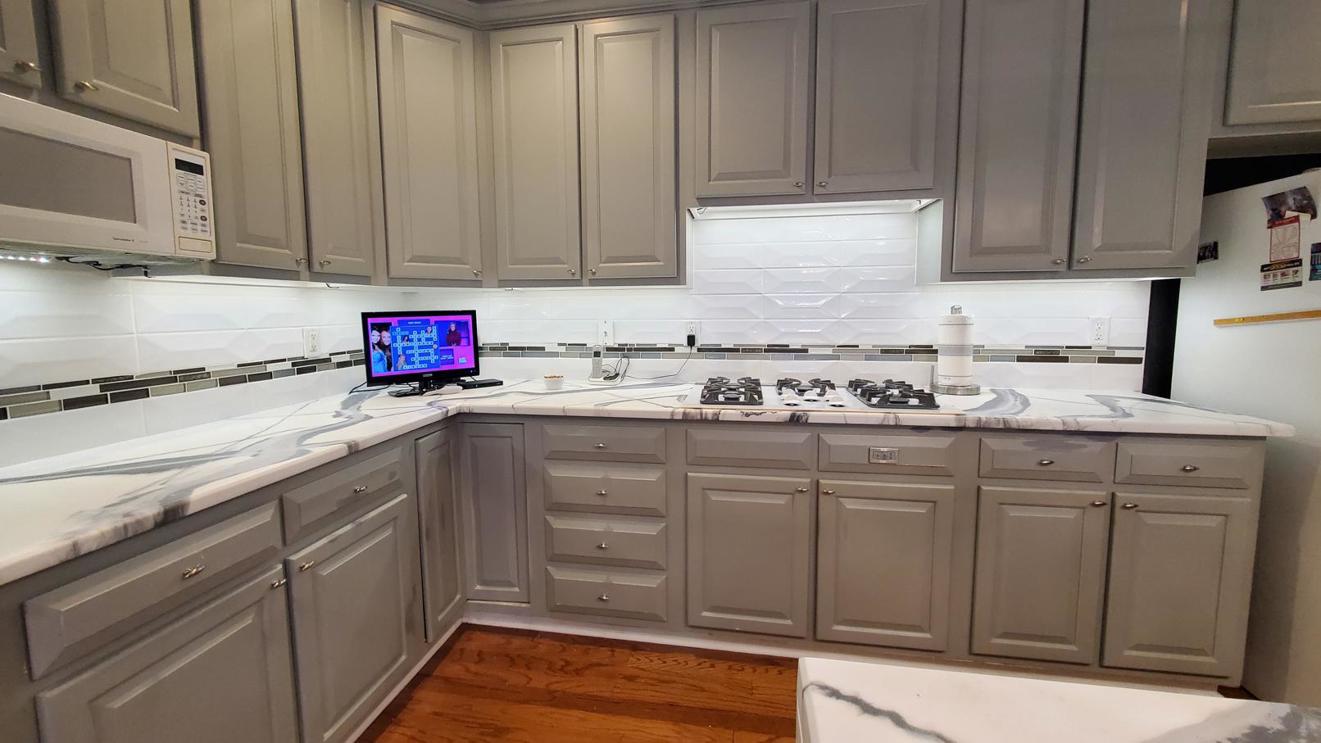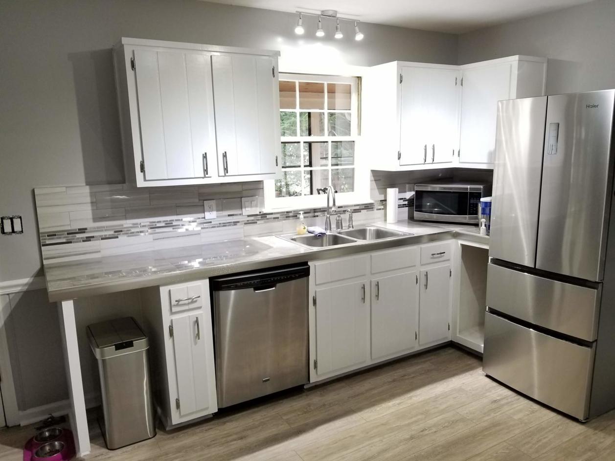 After! - Tiled Backsplash, Painted Cabinets, Epoxy Countertop, and more...